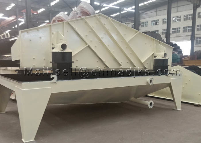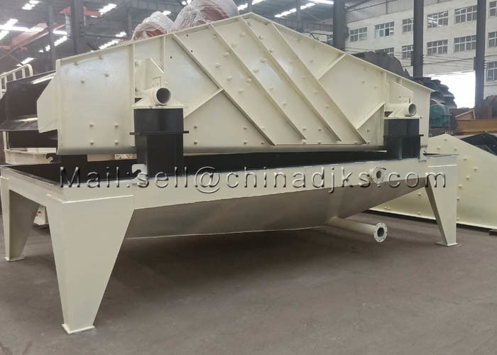 Het dit ontwaterende trillende scherm is ideaal gezien geschikt voor het ontwateren van mineraal zand (b.v. 0-4 mm) of fijn zand (b.v. 0-1 mm). De ontwaterende schermen zijn uitgerust met een vlakke die zeef van Pu wordt gemaakt die hoge duurzaamheid aantonen. Het sorteren van het scherm maakt het mogelijk om twee verschillende fracties van de helling naar twee transportbanden te verzenden.